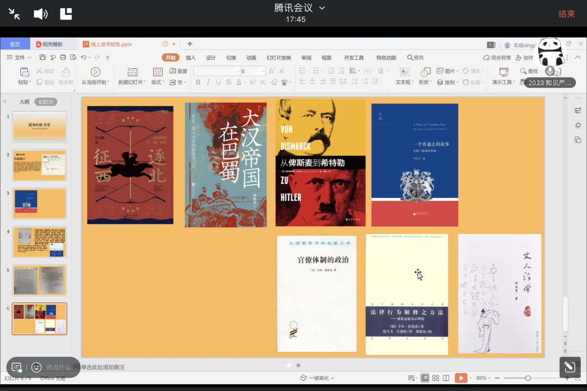 (通讯员 张宁莎 王子恒)为了在寒假期间有效激励同学们进行阅读,共享阅读资源、交流阅读心得,提升法学专业素养,金沙官网2023级于2025年1月17日晚上7点、1月23日下午3点利用腾讯会议本科生开展了两期线上读书报告会,分别由法学三班班导师姚迪、一班班导师姜文峰担任点评人,2023级辅导员张宁莎担任主持人。