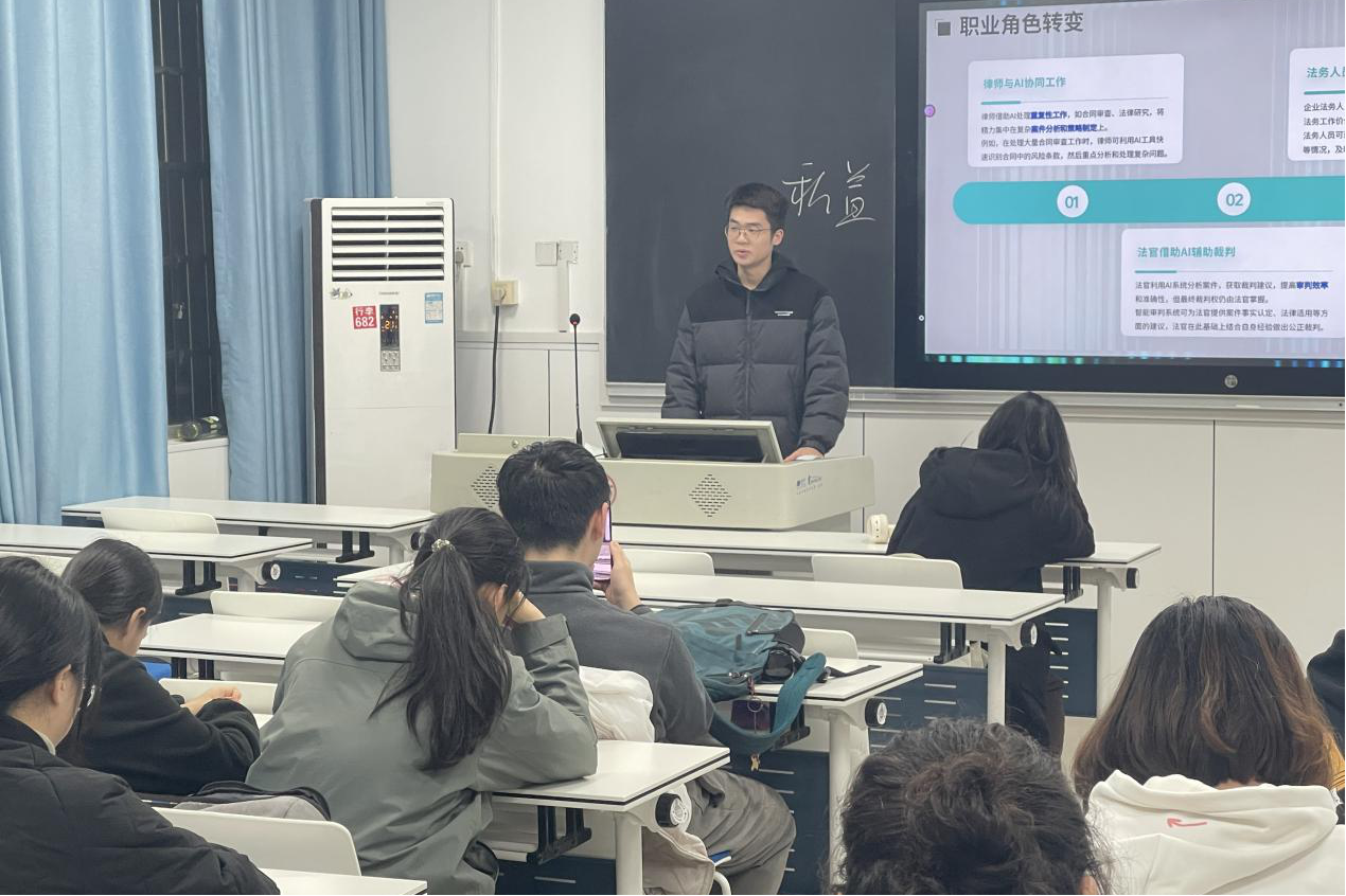 活动开始,主讲人围绕法学教育现状与挑战、AI技术发展图谱、学习路径的三大革新方向、法律职业的新坐标系、风险与伦理边界以及未来十年发展预测六大主题进行简要介绍,与同学们就人工智能如何赋能法学教育展开探讨,讨论如何在未来的学习和工作中将人工智能与法学专业的学习深度融合,助力解决课程学习中的案例分析、法律检索和文书写作等问题。