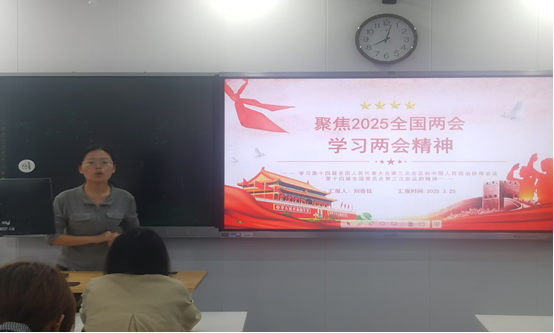 (通讯员:周菩慧 李奕瓯)为严格执行党的组织生活制度,全面贯彻习近平新时代中国特色社会主义思想,加强党员同志的思想建设工作,强化基层党员的理论武装,2025年3月26日中午,金沙官网本科生第三党支部组织在6165cc金沙总站102教室召开2025年度全国两会精神学习活动。会议由支部委员谭蕴文同志主持,刘香钰同学担任主讲人。