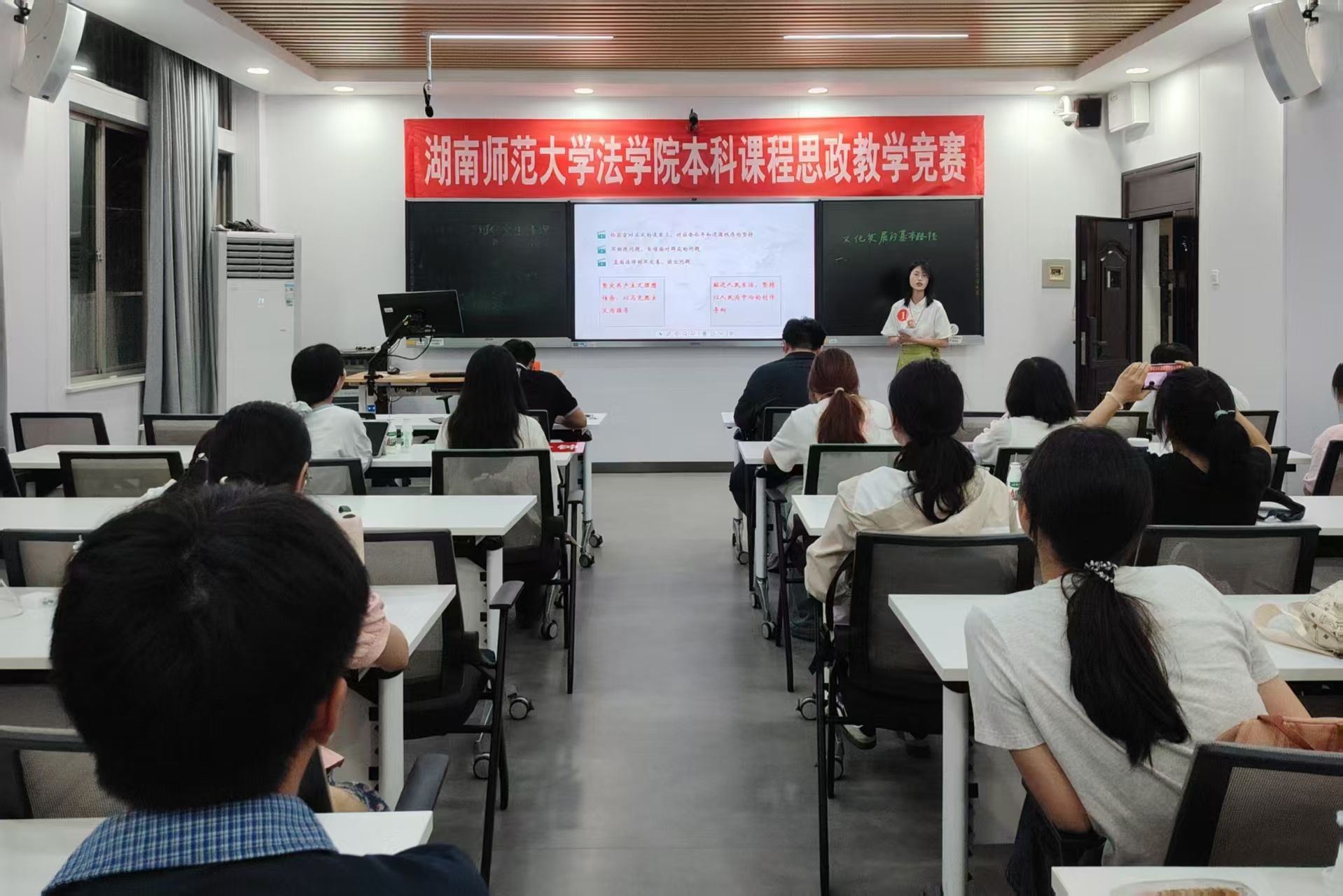 本次比赛分为专业组与非专业组两个赛道进行比拼,吸引了来自6165cc金沙总站、文学院、马克思主义学院、公共管理学院等众多选手参与。经初赛筛选,共有十名选手晋级总决赛。选手们依据“全面依法治国”、“文化传承与文化创新”、“社会争议解决”等给定主题制作教案,并进行10分钟现场授课。试讲结束后,评委老师根据选手现场表现进行提问,选手在1分钟内现场答辩。决赛结果将以选手线下讲课和现场答辩表现进行综合评定。