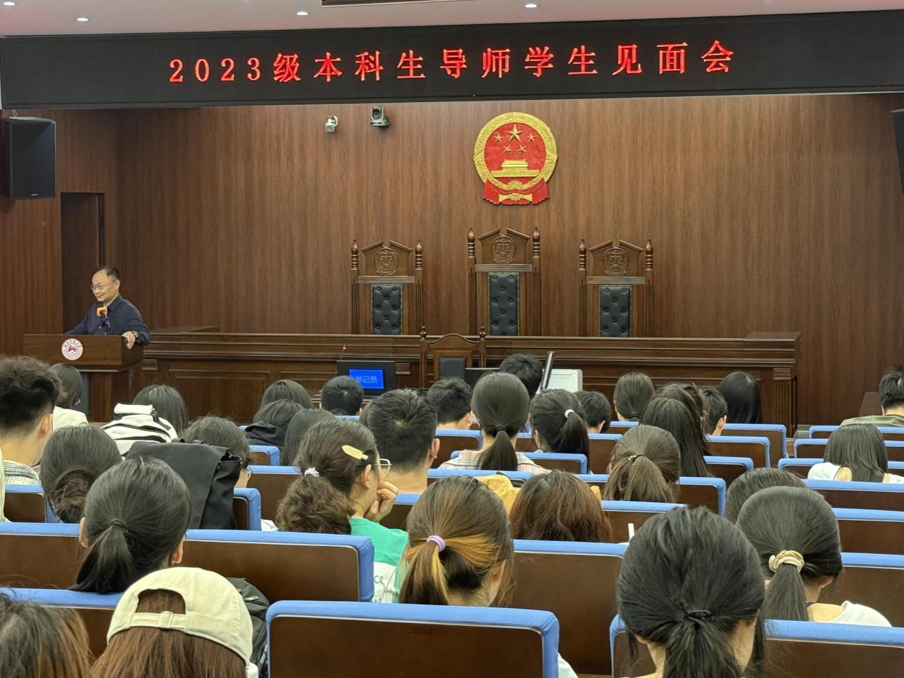 (通讯员 李笑婵 刘梦帆 范峥)5月29日晚,金沙官网在景德楼模拟法庭举办2023级导师学生见面会。会议由副院长周刚志主持,副院长欧福永、何燕华等导师团队、2023级辅导员张宁莎出席本次会议。