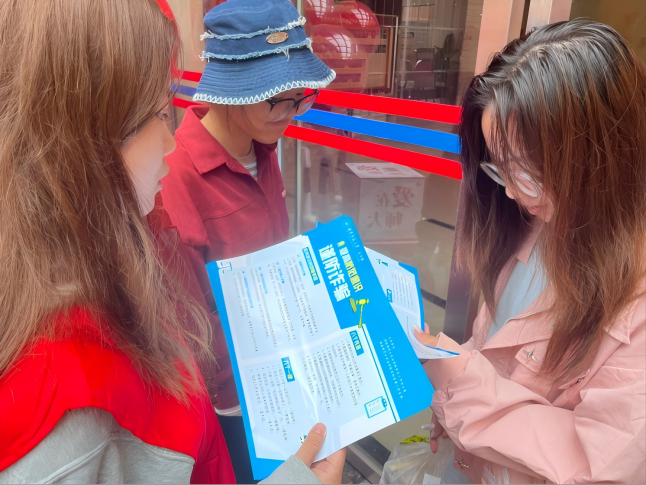 活动伊始,支部全体成员分为多个小组,在景德楼和木兰路设立的宣传点分发反诈宣传单。支部成员通过生动易懂的语言为大家讲解诈骗分子的常见话术和套路,剖析诈骗案例,既提高了反诈意识,又融入法学专业特长增强了专业认同感。