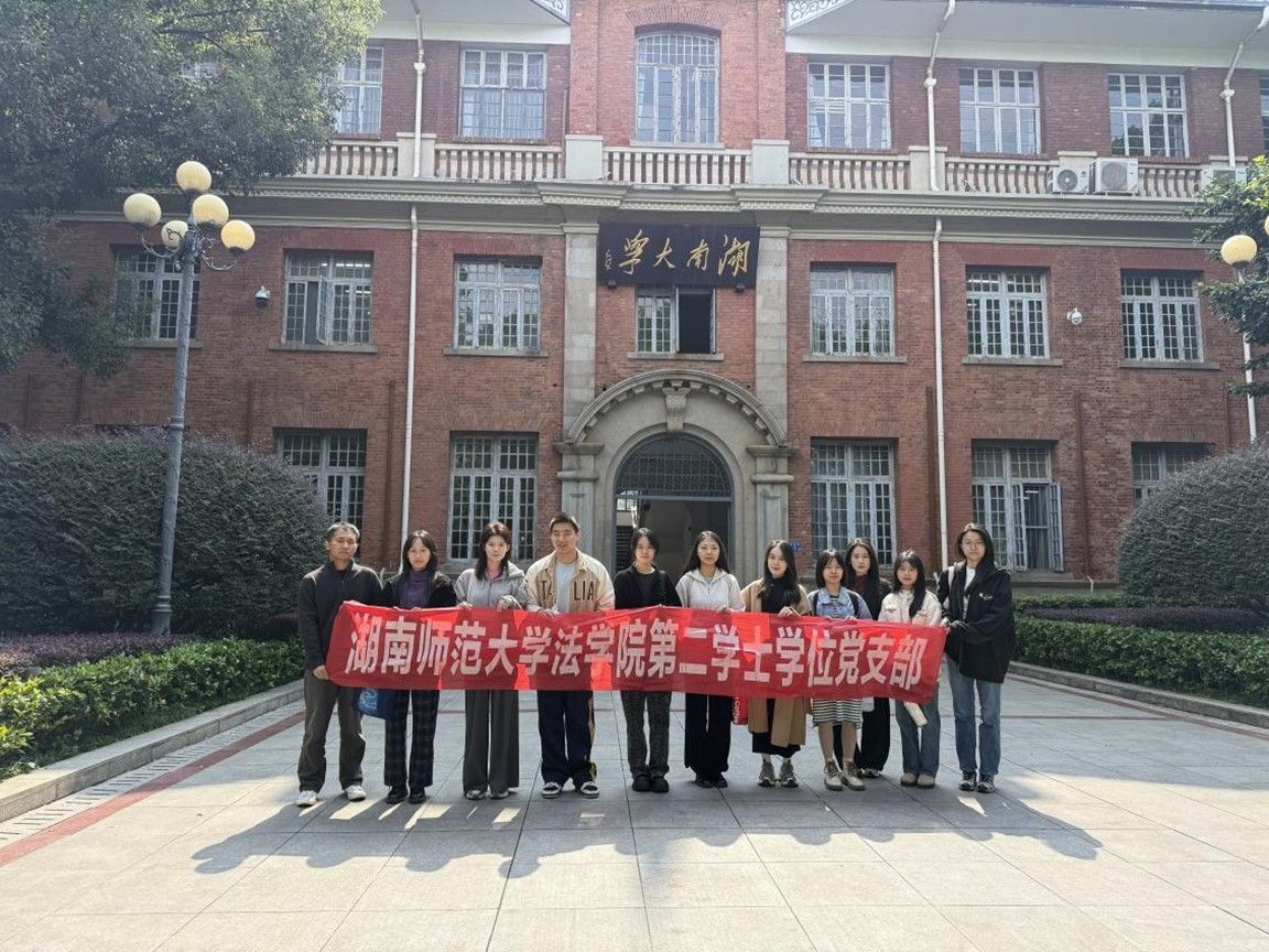 党课结束后,全体党员赴湖南大学红楼开展“‘湘’遇红楼,青春‘党’行——湖师大青年党员的红色寻访”主题党日活动。红楼作为湖南大学红色文化地标,承载着近代以来湖湘大地的革命记忆与精神密码。励铭荃结合史料,梳理红楼历史沿革,重点讲述了近代知识分子传播进步思想、革命先辈勇毅前行的峥嵘往事。党员们驻足沉思并合影,切身体会到红楼爱国奉献、坚毅担当的精神内核。