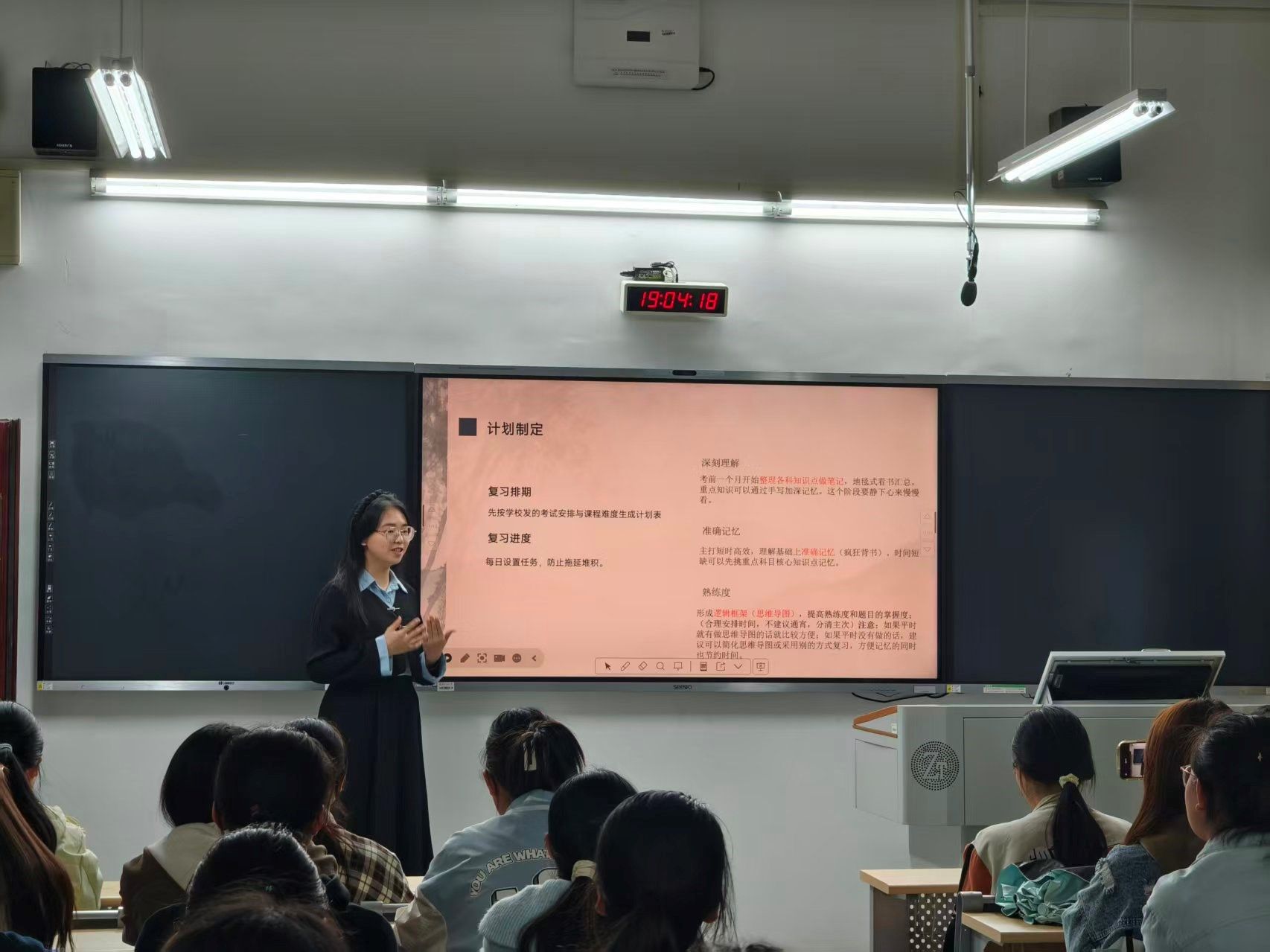 本次精勤讲堂共邀请了三位来自2024级法卓班的同学作为主讲人,她们分别是西部发展协会理事长但陆佳、院青传采编部副部李奕瓯以及学习经验分享代表粟湘婧。三位同学结合自身经历,采用PPT展示的形式,就个人培养学习习惯、参加社团竞赛、丰富生活体验等方面进行了详细介绍,为新生提供诸多实用信息,本次活动旨在帮助同学们尽快适应校园生活、缓解初入大学校园时的迷茫焦虑。