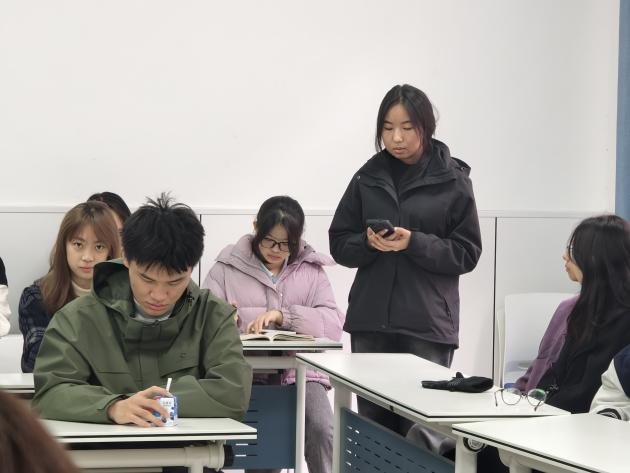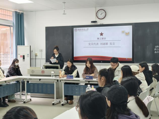 党员代表刘涵颖发言。她表示,结对帮扶是一个双向互动、共同成长的过程。在代表发言环节,少数民族学生代表乔龙巴图·娜木加甫同学真挚地分享了其入学以来虽感到迷茫和挑战,但在辅导员、授课教师及学长学姐的关心与帮助下,逐步融入了校园生活。