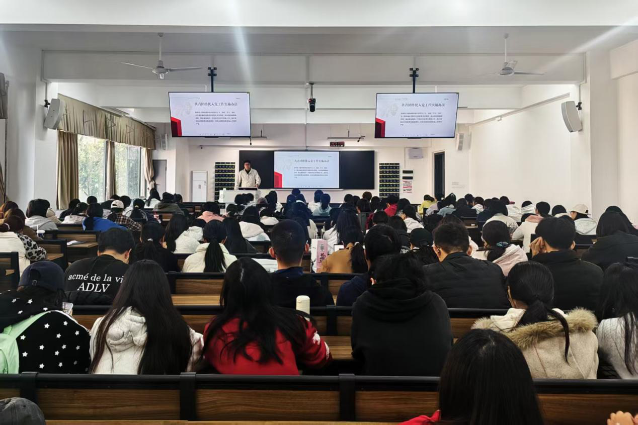 首先,廖星围绕“团的基层基础工作”这一主题,结合团支部的各项日常工作展开授课,系统介绍了发展党员的基本流程,并从学业成绩、作风表现等方面对学员提出具体要求。随后,他以大学四年为时间轴,为学员介绍了暑期“三下乡”社会实践活动、“集中统一实习”等实践安排,鼓励同学们积极参与各项实践活动,锻炼自己的综合能力。最后,廖星与学员进行互动交流,就入党流程及相关要求的疑问作出现场解答。