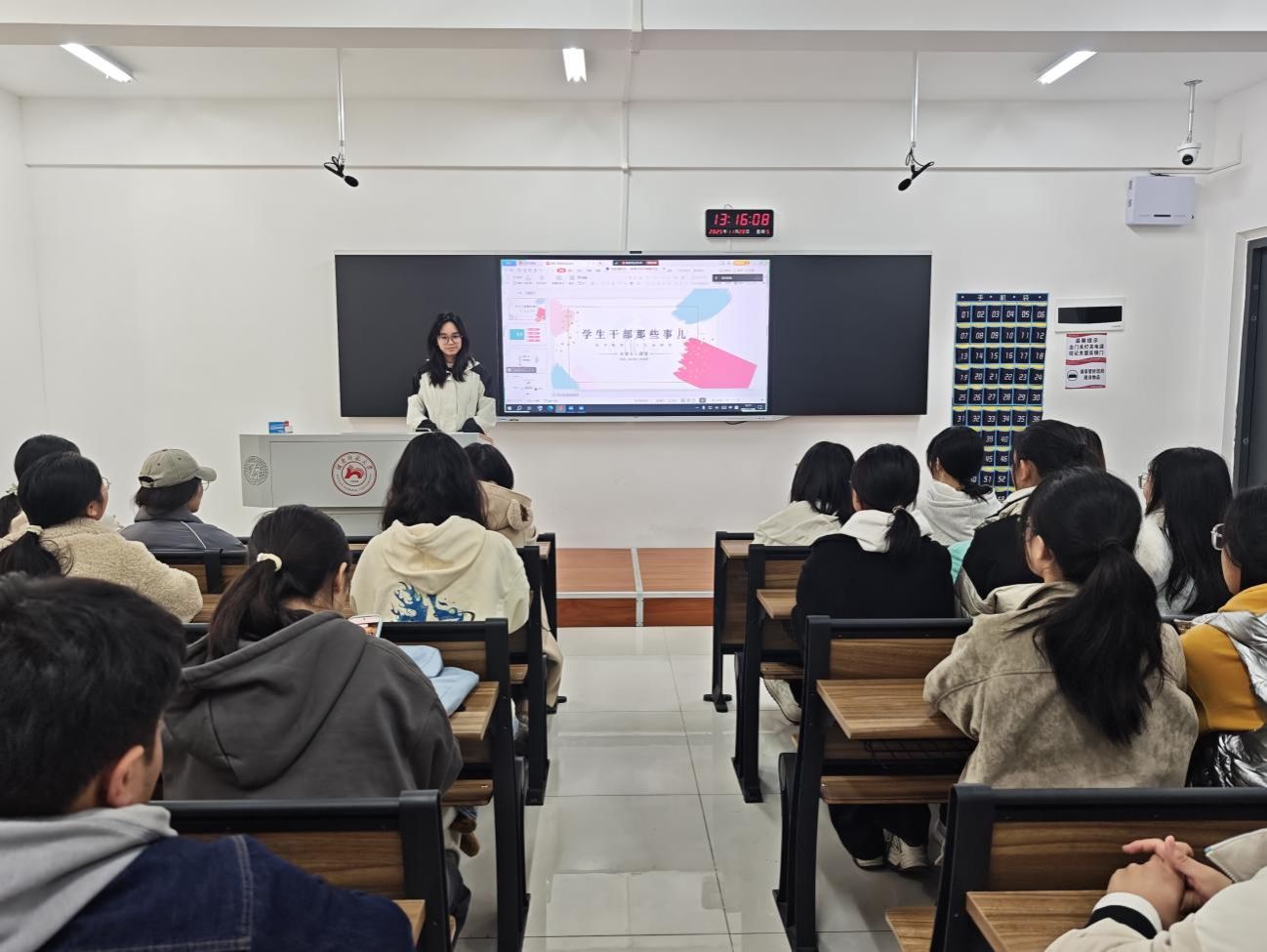 最后,周莹鼓励学员们作为学生干部,要在服务同学与奉献集体中提升个人能力与思想认知。学员们课后纷纷表示将以周莹为榜样,将课上收获的技巧应用于实际,努力提高日后工作的质量与效率。