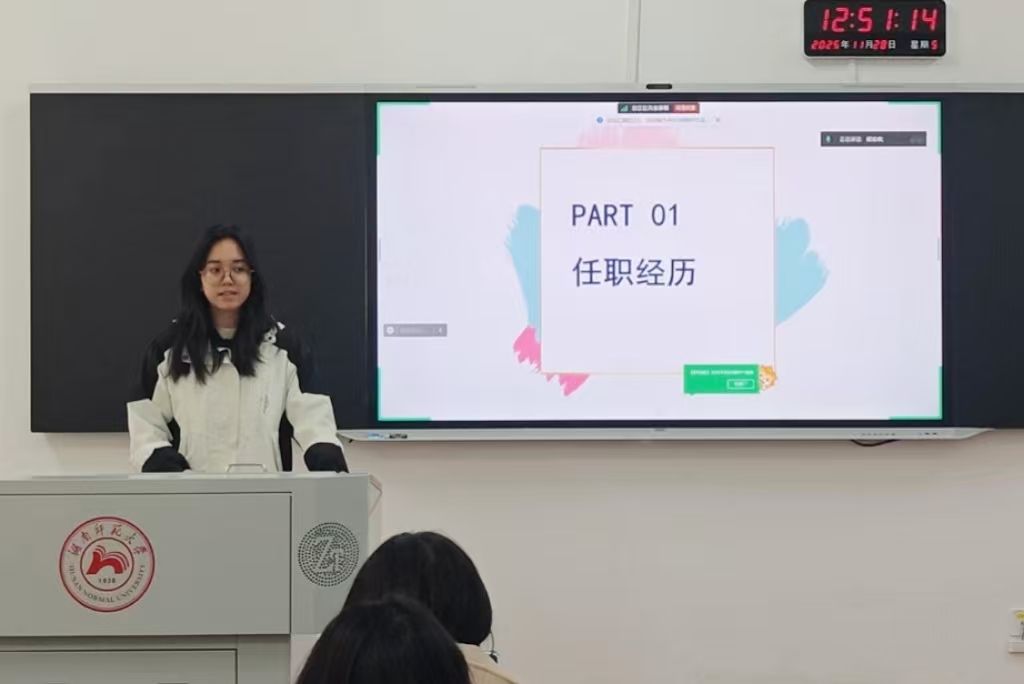 周莹首先结合自身任职经历,分享其成长经历与工作经验,引导学员培养踏实履职、积极进取的工作态度。随后,针对同学们提出的学习、工作与生活失衡问题,她结合自身经历,提醒学员应在重视自我需求的基础上,实现三者的有效平衡。此外,她还围绕活动流程,总结出开展工作中的前期筹备、中期执行与后期总结环节中的关键要点,帮助学员养成高效的工作方式。