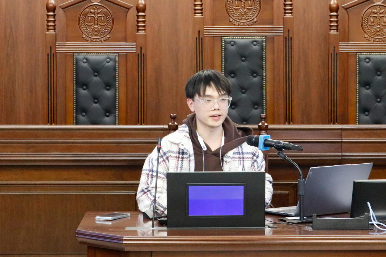 经验分享环节结束后,队长组杨城凤介绍漾翅杯法律实践能力大赛的赛事情况并开展工作对接。她表示各组队员需各司其职,承担角色分工、赛务服务、设备调试等工作,确保赛事有序推进。队长组易俊羲带领大家齐唱漾翅队歌。